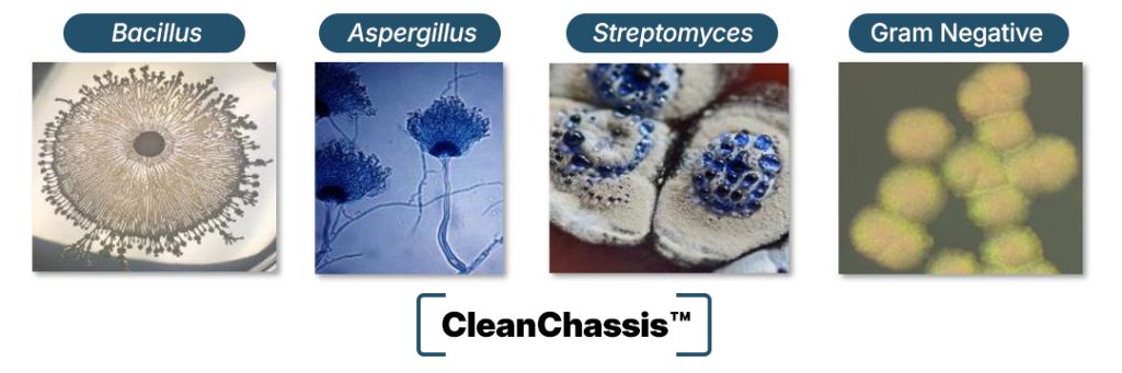 - CleanChassis™ strains utilizing the main industrial workhorses used in pharma, agriculture, and enzymes, have been engineered to reduce competing metabolite production: